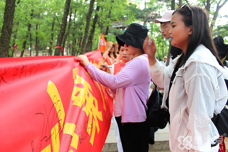 在爬山的過程中,博士愛家人們還進行了一場登山比賽,大家各顯神通,率先到達目的地的小伙伴們紛紛在橫幅上簽名留念。